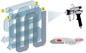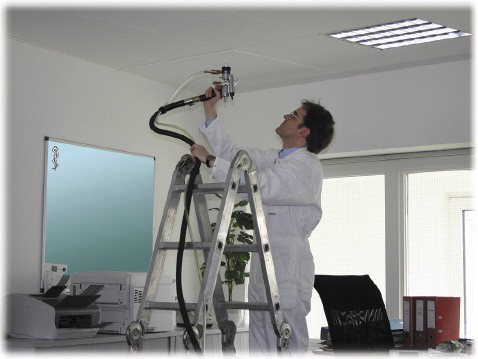 In general stratul Evo-Innovation este aplicat prin tehnica de sprayere -HVLP( High Volume Low Pressure) al EVO PDI. Acest sistem certificat, de joasa presiune prin tehnica de pulverizare, permite acoperirea peretilor, a plafoanelor interioare fara resturi, suprafata ramanand foarte curata cu doar mici pierderi. Stratul Evo-Innovation este incolor si inodor. |