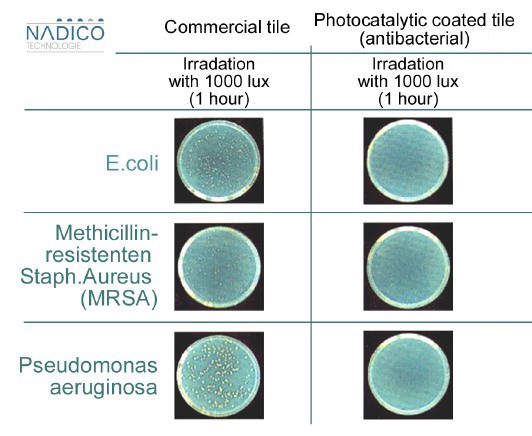 Aplicarea stratului Evo-Innovation este o idee ideala pentru extirparea tuturor agentilor patogeni. Aplicarea stratului are efect antimicrobian pe toate suprafetele aparaturilor medicale si de inventar. Folosind o varianta specifica de Evo-Innovation, TiO2 este practic realizata cu particule de argint care ofera exact aceleasi prestatii impotriva agentilor patogeni in zonele care sunt mai putin iluminate sau chiar deloc.